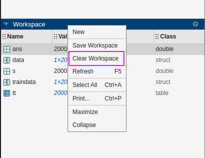 12. 다시 실행하고 싶을 땐, Workspace에서 우측 마우스, Clear Workspace를 클릭하여 초기화해줄 수 있다.