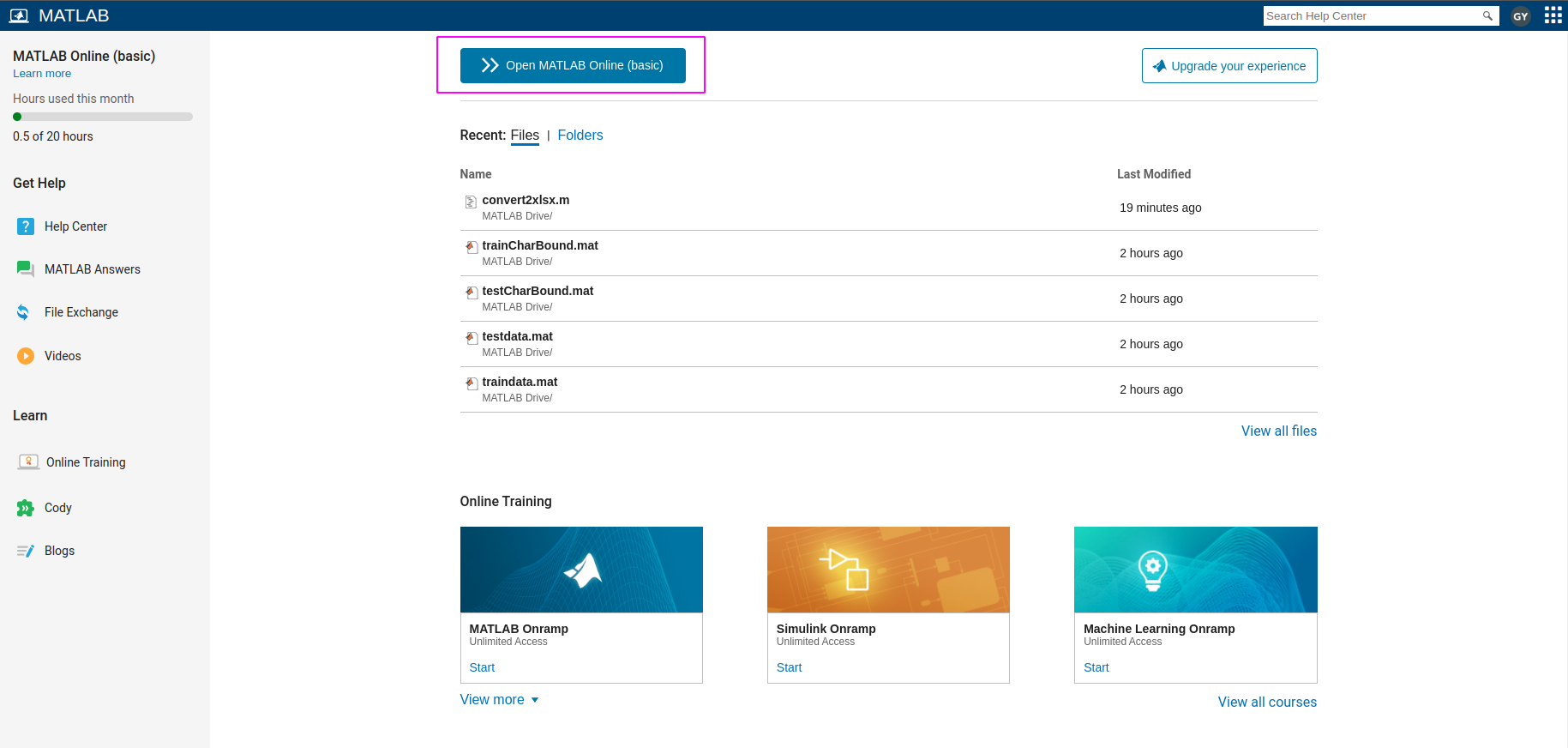 4. MATLAB 받기 버튼을 눌러서 들어가면 5번으로 넘어간다.
