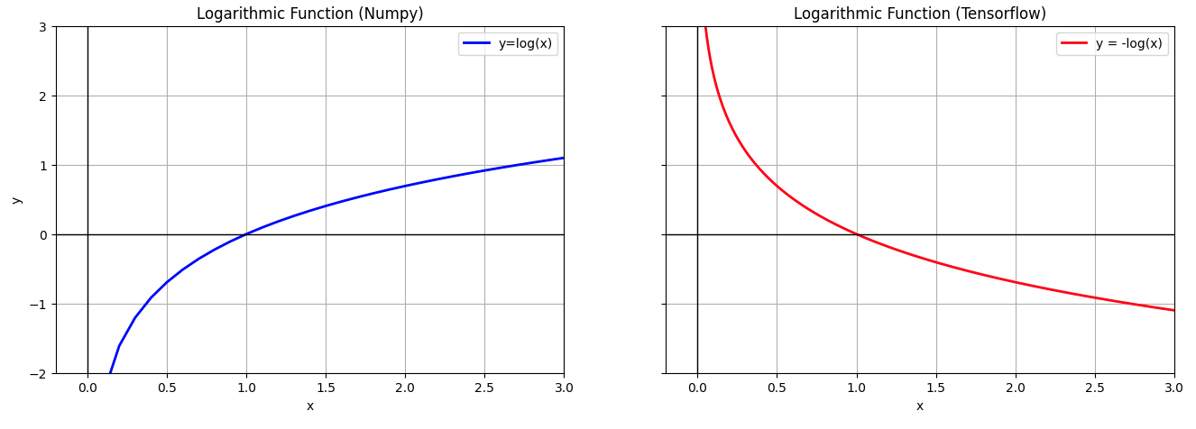 axes[1].set_title('Logarithmic Function (Tensorflow)')