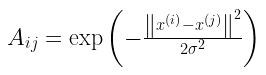 우선 이미지 데이터를 graph 자료로 생각해보면 각 pixel은 node이고, edge의 가중치는 pixel의 값(intensity)을 통해 산출해 줄 수 있다. node의 값(=intensity)을 x라고 생각하면, 아래의 식처럼 Gaussian kernel을 통해 Affinity matrix의 원소로 들어갈 가중치값들을 구해줄 수 있다.