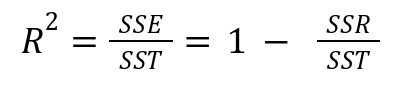 - SSE; Explained Sum of Squares = SSR; Sum of Squares Regression