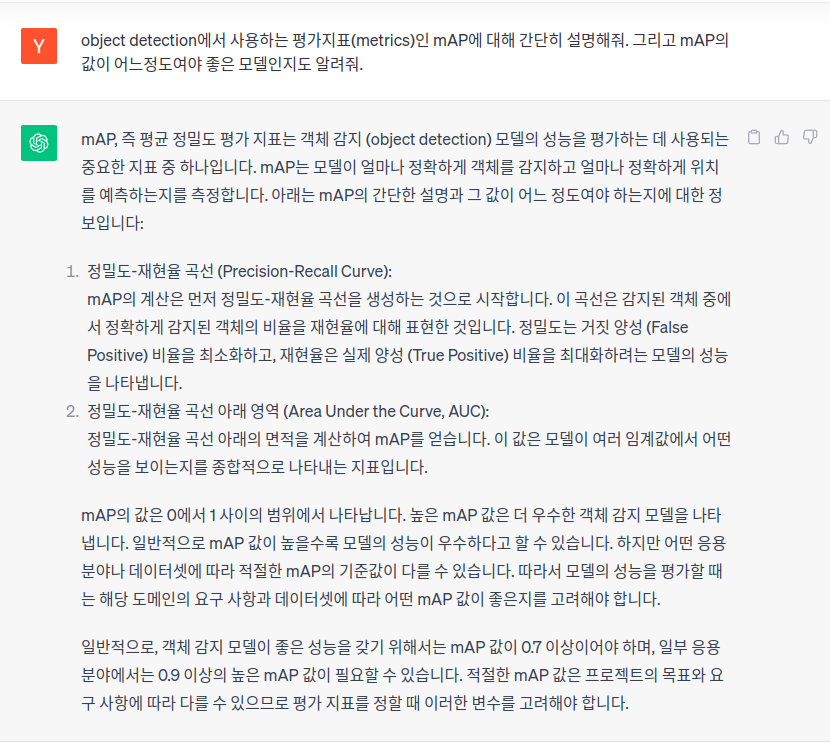 - object detection의 정확도 평가는 대부분 mAP로 한다.
