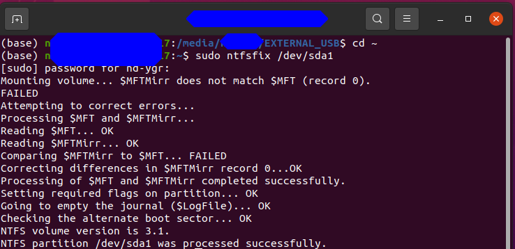 sudo ntfsfix /deb/sda1