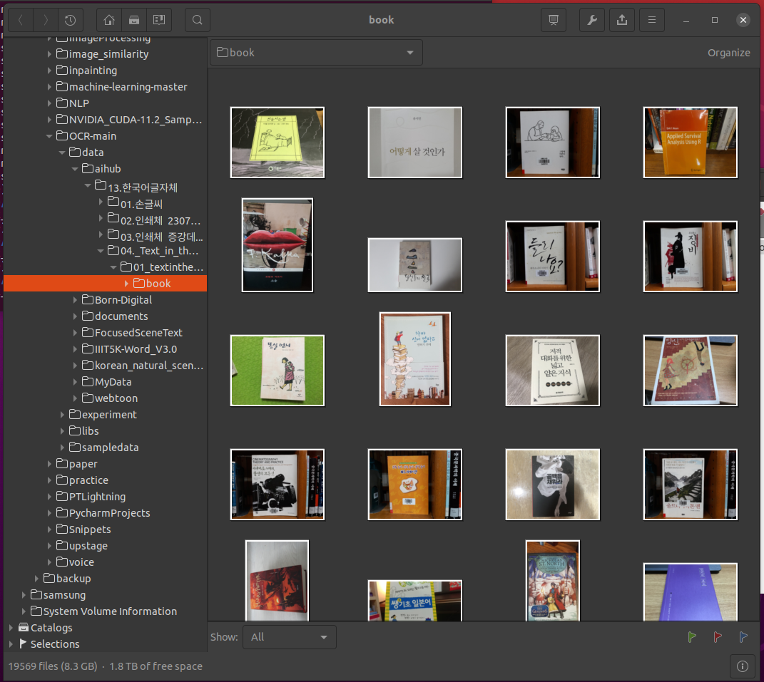 이 데이터셋의 모든 이미지를 물론 모두 확인할 일은 없겠지만(할 수도 없겠지만), 그래도 GUI환경에서 이미지 썸네일 리스트들을 확인하고, 몇가지 랜덤한 이미지에 대해 보고싶을 수도 있다. 하지만 일반적인 리눅스 시스템이 깔려있는 컴퓨터로 파일탐색기를 열고 이미지가 잔뜩 들어있는 폴더에 접근한다면,,,,(망한다ㅜ) 컴퓨터가 멈추고, 계속 로딩된 상태로 오래 유지되는 경우가 많을 것이다. 로딩이 된다고 해도 굉장히 느리고, 조금만 잘못하면 금방 렉이 걸려버린다.