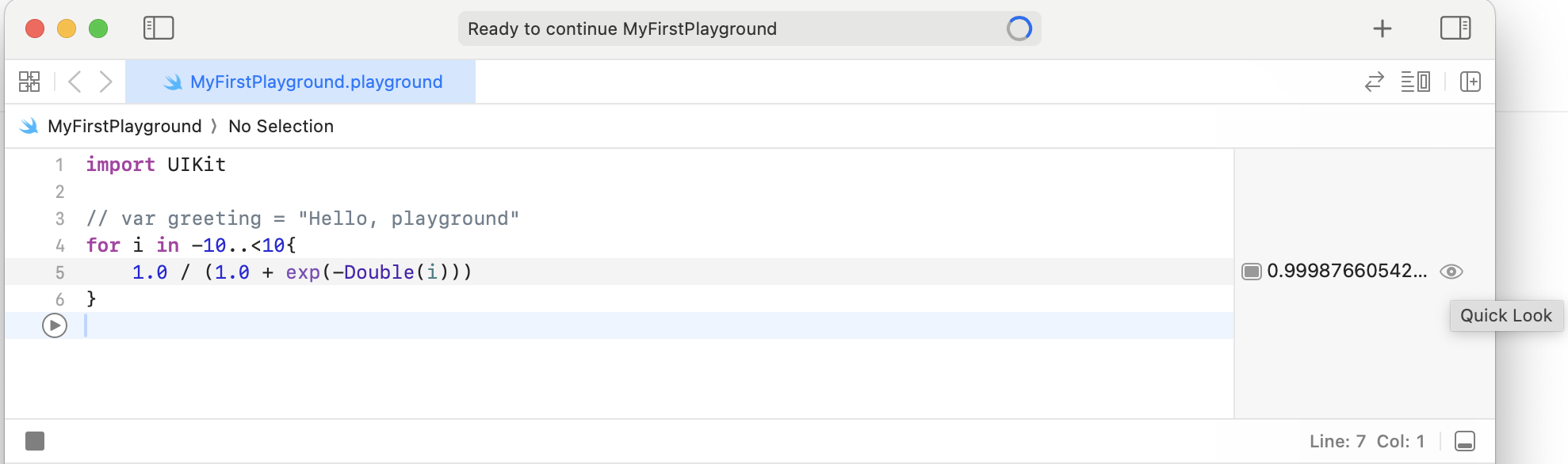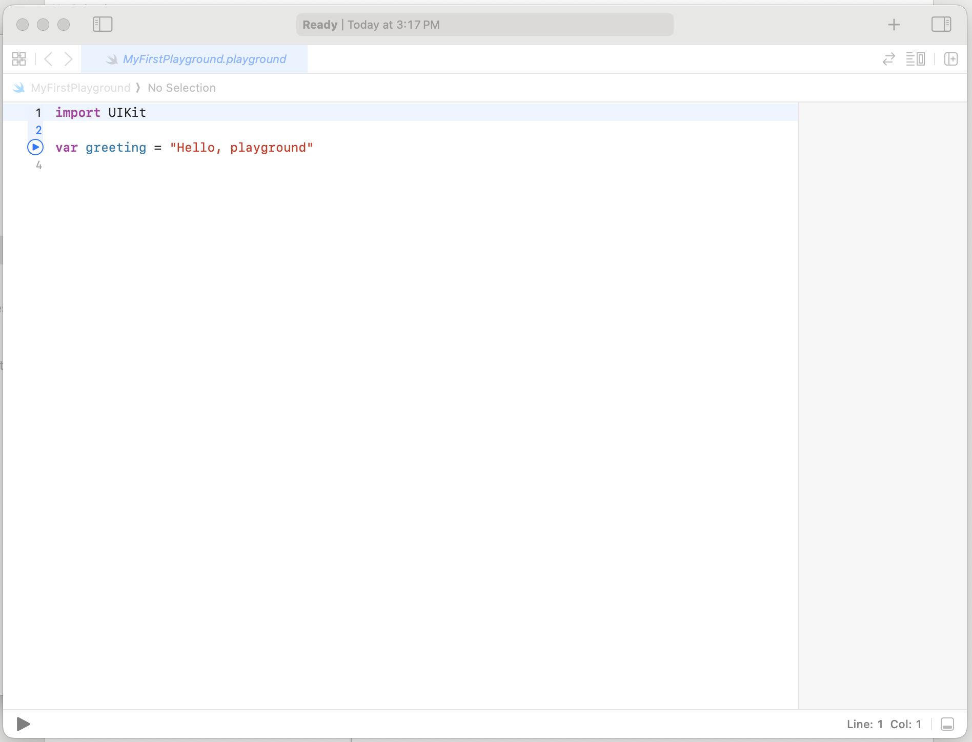 위의 예시처럼 project를 만들어 본격적으로 app 구현 코드를 개발할 수도 있지만, swift에는 playground라는 파이썬으로 치면 주피터 노트북처럼 간편하게 코드를 입력해서 즉각적인 결과를 볼 수 있도록하는 기능이 있습니다.