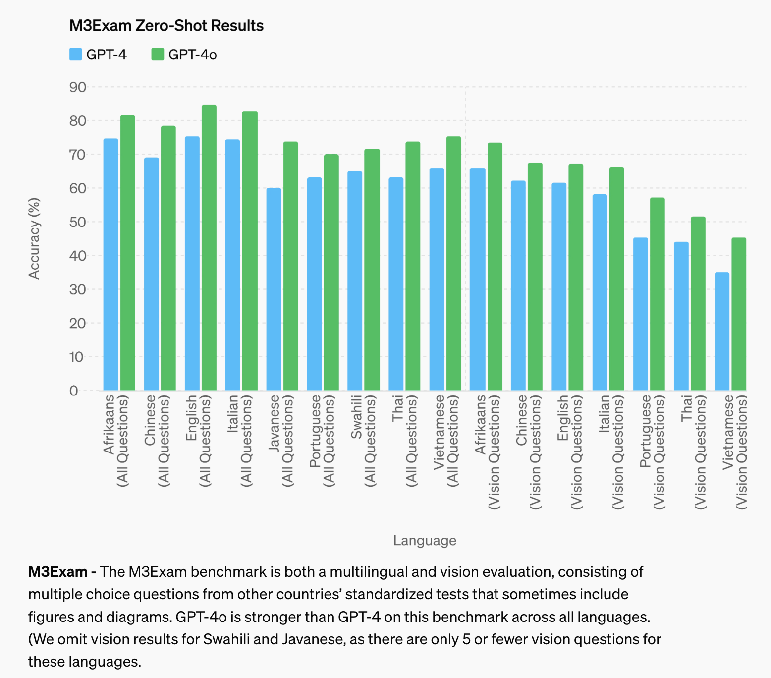 모든 면에서 GPT-4보다 GPT-4o 모델이 월등한 정확도를 내고있다.