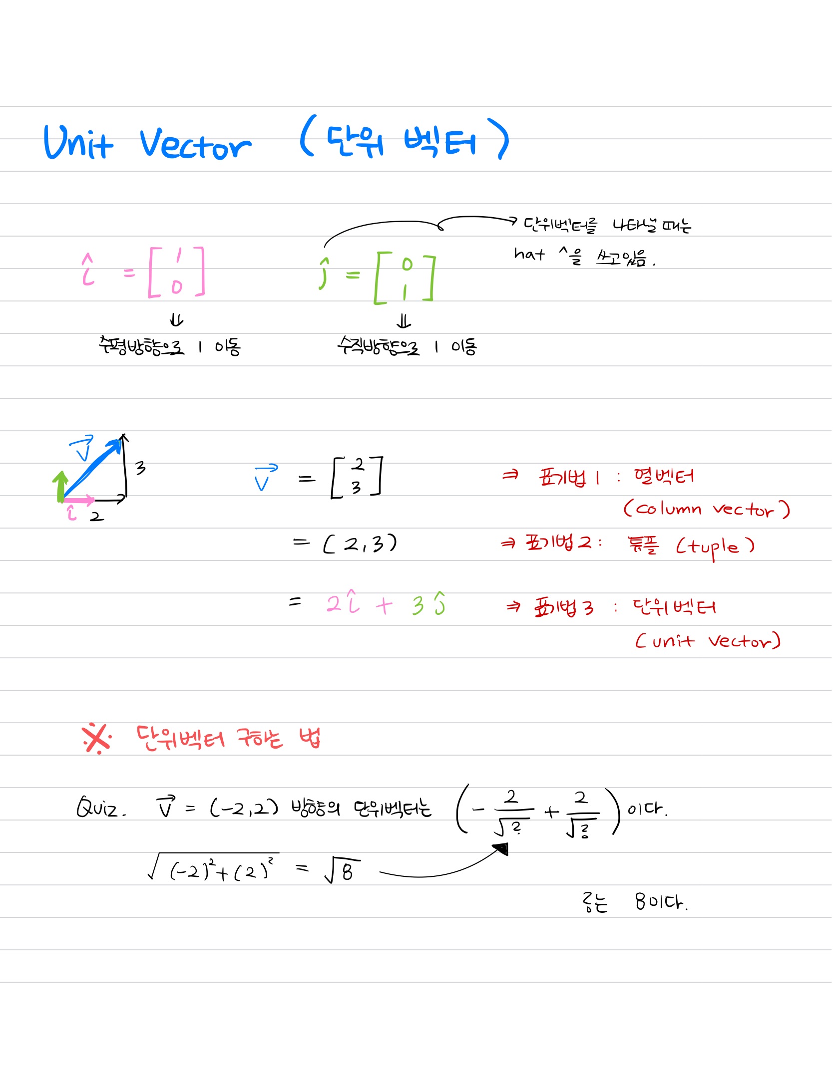 3) 단위 벡터 (Unit Vector)