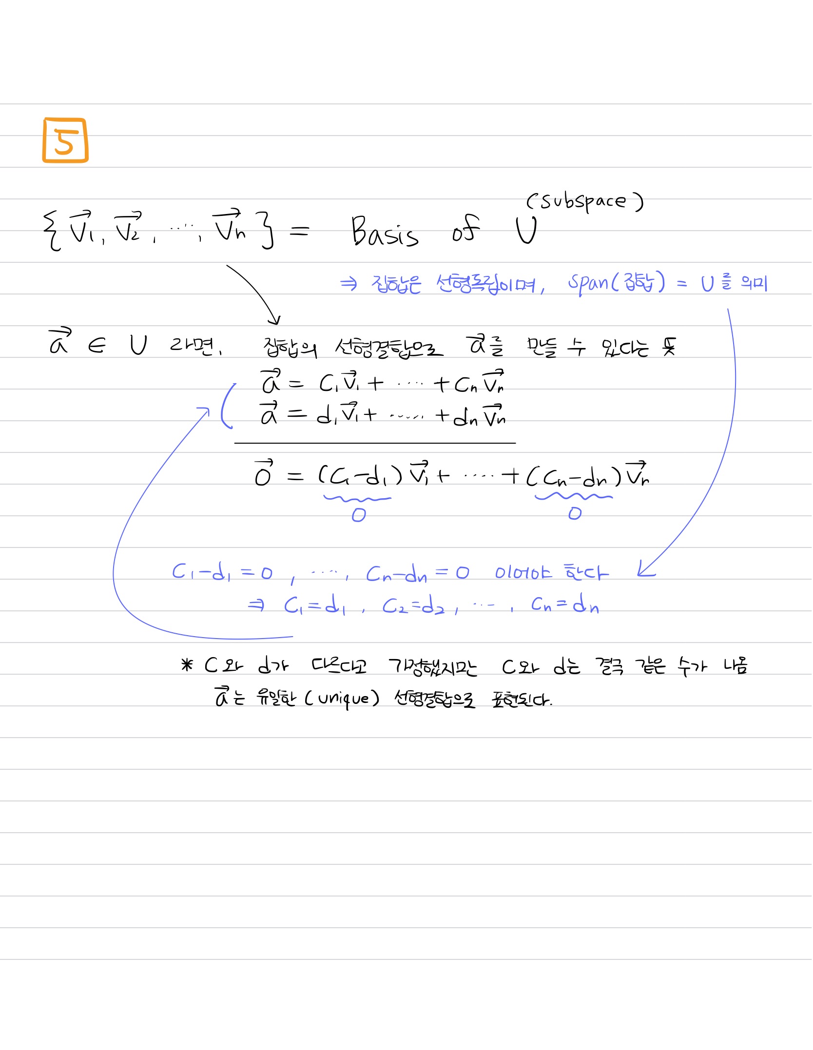 이를 S는 V(부분공간)의 기저라고 한다.