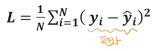 - ex. MSE (Mean Square Error) : 회귀모델의 대표 손실함수