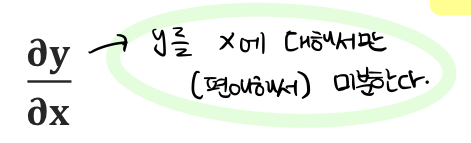 * 편미분 : 원하는 변수에 대해서만 미분하는 것 (원하는 변수 이외에는 상수 취급)