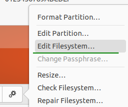 3. 설정아이콘 선택 > Edit Filesystem 클릭 후, 원하는 이름으로 변경