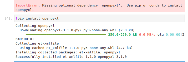 (pandas를 지원하는 openpyxl 라이브러리가 설치되지 않을 때 뜨는 에러이므로 바로 설치해주면 에러가 나지 않는다.)