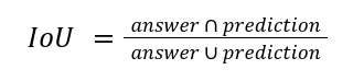 - Object Detection 모델에 대한 answer(annotation) 영역과 output(prediction) 영역 사이의 겹치는 정도를 파악하여, 이를 통해 정확도를 평가하기 위해 IoU를 측정한다.